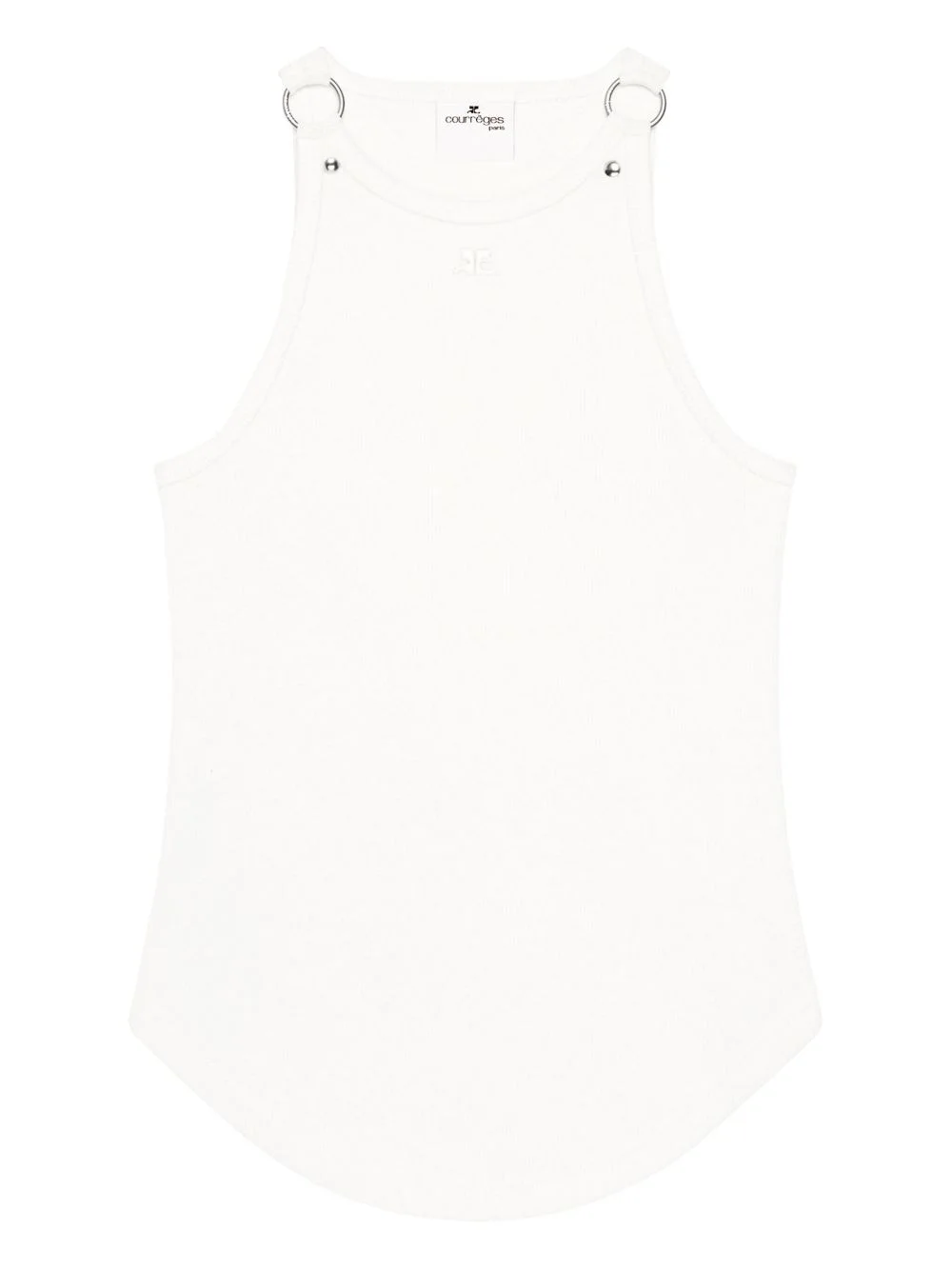 sleeveless top Highlights - White - Round neckline - Decorative metal rings - Racer back Imported Composition Outer: Cotton 98%, Elastane 2% Washing instructions Read Manufacturer Guidelines