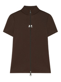 chocolate brown front zip closure logo detailing high collar short sleeves - Color: BROWN - Made in: Italy - Designer Style ID: 325JTO446JS 0250 1983 Composition and care Outer Composition Polyester: 100.0%