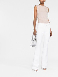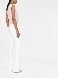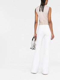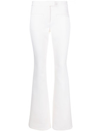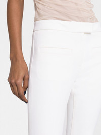 crepe-texture bootcut trousers Highlights - White - Virgin wool - Low-rise - Bootcut - Off-centre front button fastening - Two front welt pockets - Two rear welt pockets Made in France Composition Outer: Virgin Wool 100% Lining: Cotton 100% SIZE & FIT Model measurements Height 5 ft 11 in(1.8 m) Bust/Chest 31.49 in(80 cm) Hips 35.82 in(91 cm) Waist 24.8 in(63 cm) FittingInformation Designed with a bootcut leg, these trousers allow for a close fit at the waist and with an unrestricted, comfortable fit and additional room at the calves Made from a midweight stretch fabric, this piece offers elasticity and flexibility when worn This piece fits true to size – take your usual size