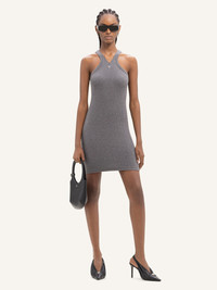 Ribbed criss cross mini dress with a zipped collar and AC logo centered on the chest. The model is 1.76m tall and wears a size S. DETAILS Composition: 97% cotton, 3% elastane Country of Manufacture: PT SKU: 324JRO452JS01659011 Color: Dark Heather Grey