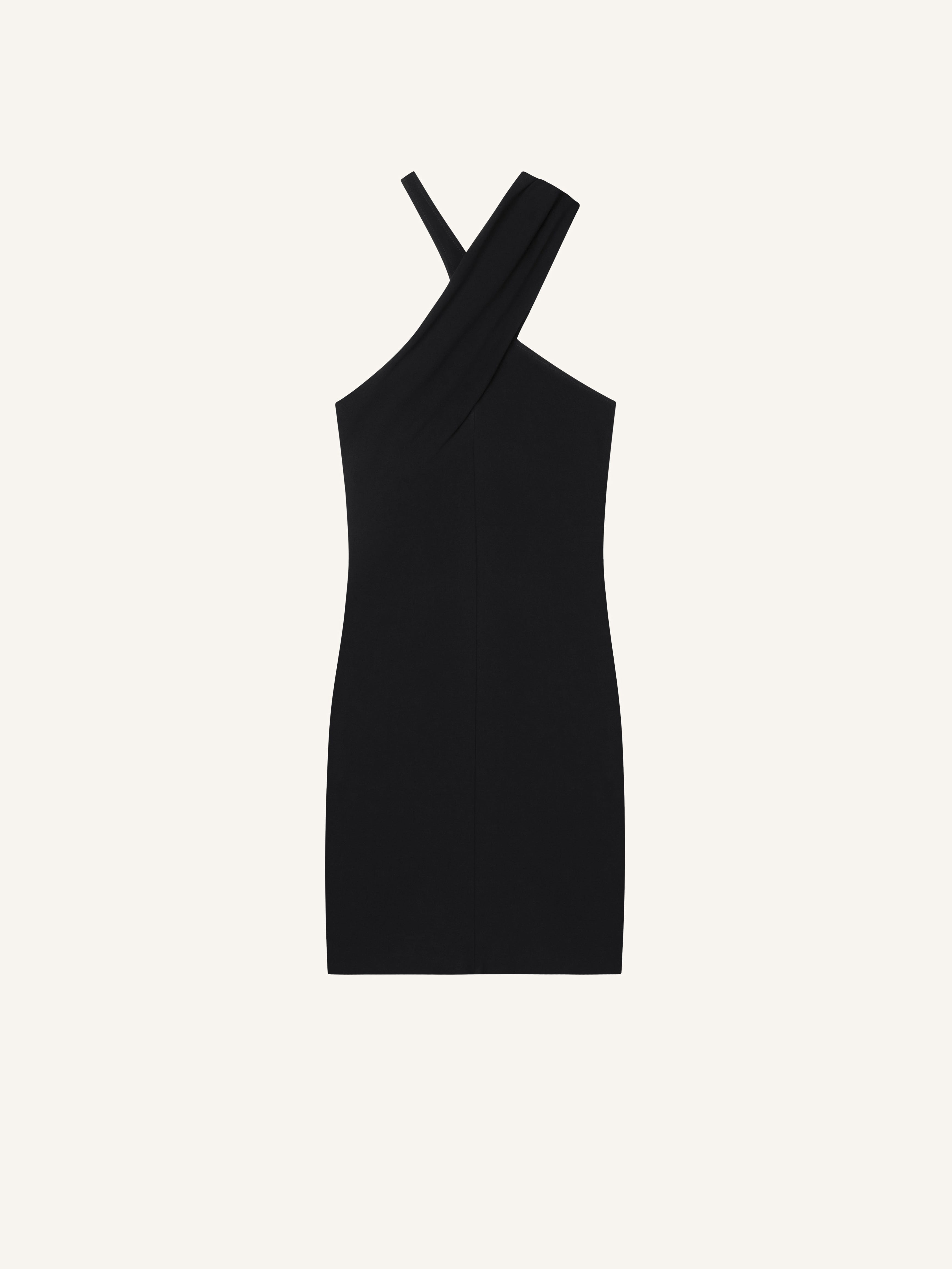Sleeveless fitted criss cross mini dress in crepe jersey. The model is 1.76m tall and wears a size 36. DETAILS Composition: 95% viscose, 5% elastane Country of Manufacture: PT SKU: 324JRO459JS01459999 Color: Black