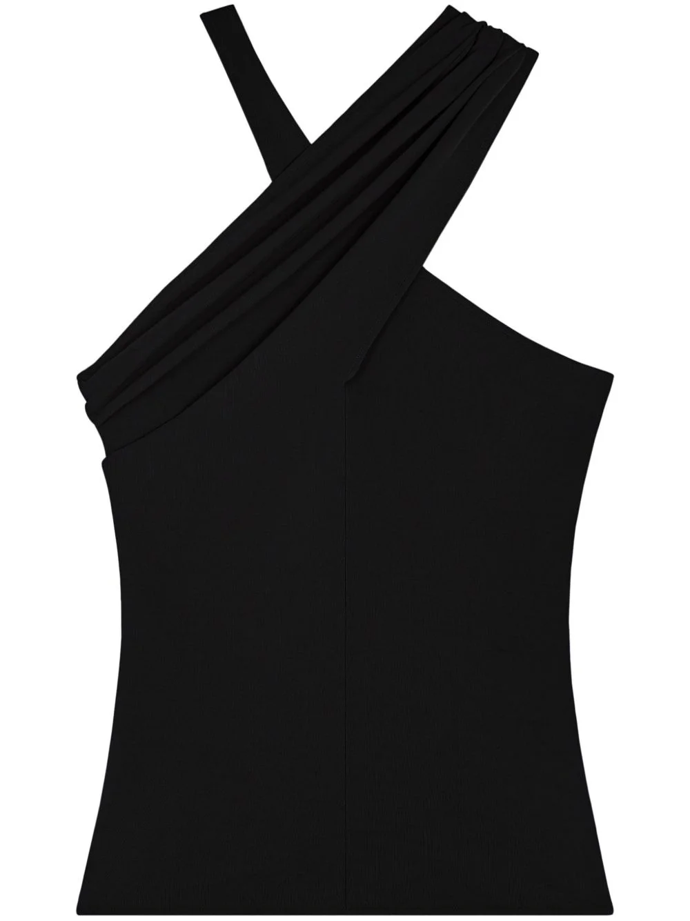 criss-cross tank top Highlights - Black - Ruched detailing - Crossover shoulder straps - Sleeveless - Straight hem Imported Composition Viscose 95%, Elastane 5% Washing instructions Read Manufacturer Guidelines