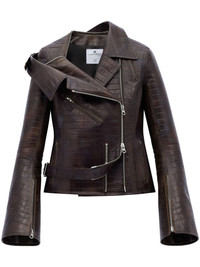 crocodille-effect biker jacket Highlights - Coffee brown - Calf leather - Embossed crocodile effect - Asymmetric design - Notched collar - Off-centre front zip fastening - Long sleeves - Cuff zips - Chest welt pocket - Two front zip-fastening pockets - Two side welt pockets - Straight hem Imported Composition CALFSKIN 100%