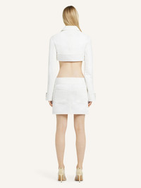 City style cropped polycotton jacket with shadow AC logo on the front and adjustable back belt. The model is 1.77m tall and wears a size 36. DETAILS Composition: 65% polyester, 35% cotton Country of Manufacture: RS SKU: 125CBL256PL01780001 Color: Heritage White