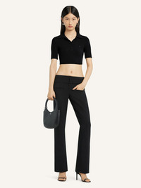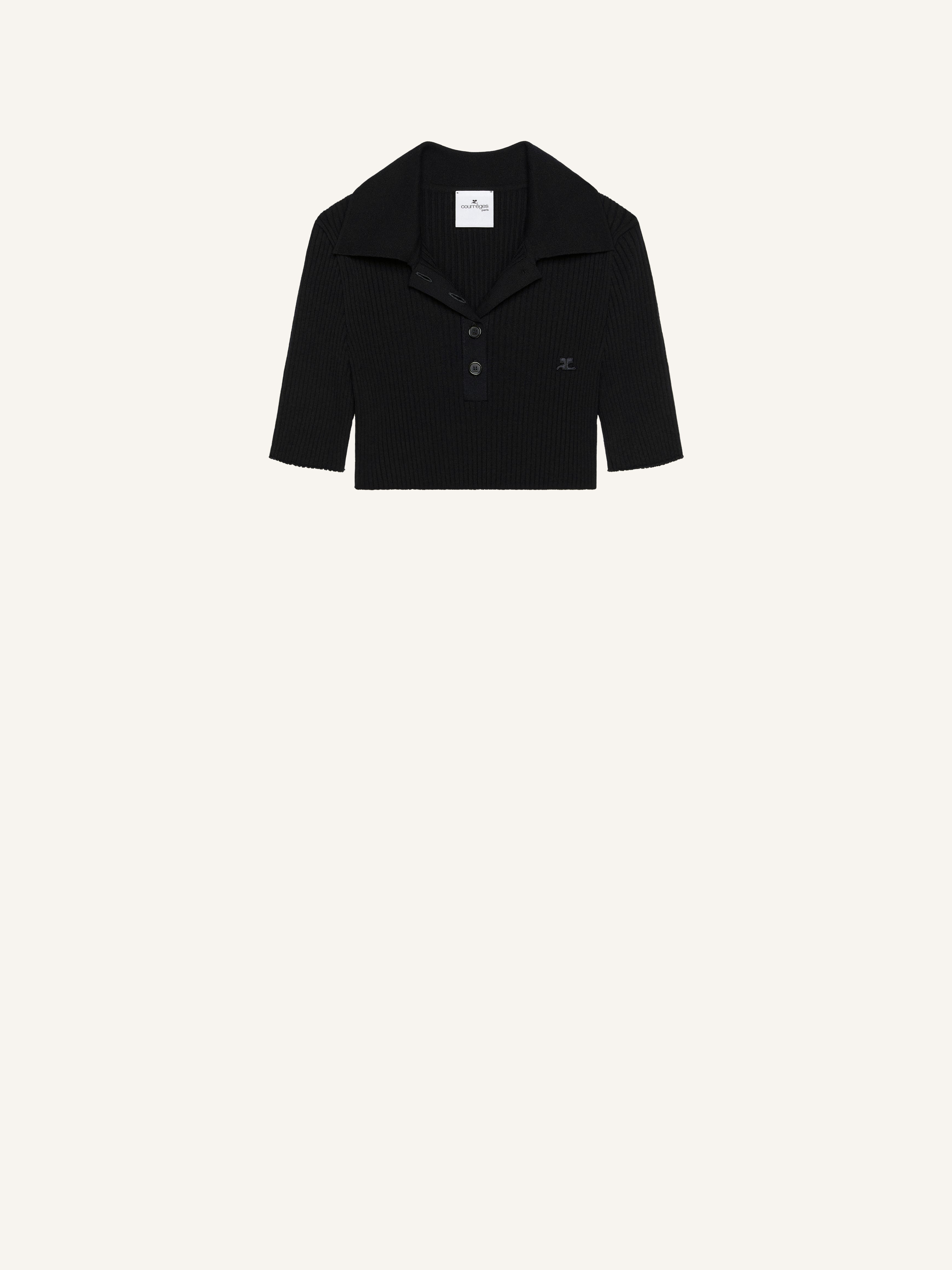 Cropped rib-knit polo with embroidered AC logo on the front. The model is 1.80m tall and wears a size S. DETAILS Composition: 70% viscose, 30% polyester Country of Manufacture: BG SKU: 125MPO046FI00019999 Color: Black