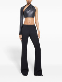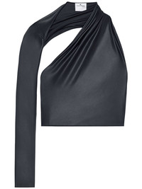 cropped top Highlights - Black - Single long sleeve - Open back - Asymmetric neck - Cropped - Straight hem - Rear hook fastening Imported Composition Polyester 50%, Polyurethane 50% Washing instructions Read Manufacturer Guidelines