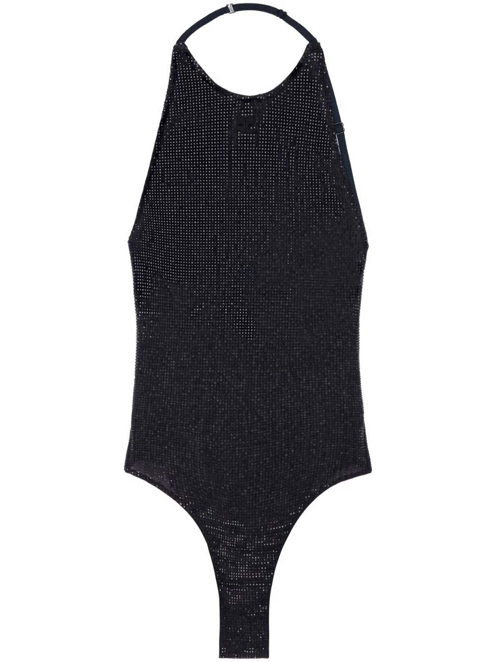 crystal-embellished halterneck body Highlights - Midnight blue - Crystal embellishment - Embroidered logo - Halterneck - Sleeveless - Open back - Bodycon design Made in Italy Composition Outer: Polyamide 90%, Elastane 10%
