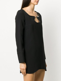 cut-out detail short dress Black cotton blend cut-out detail short dress from Courreges featuring a round neck, a cut out detail, a back zip fastening, long sleeves and a short length. Made in United Kingdom Composition Outer: Cotton 76%, Viscose 63%, Acetate 33%, Polyurethane 24%, Spandex/Elastane 4% Lining: Acetate 60%, Cupro 40% SIZE & FIT Model measurements Height 5 ft 11 in(1.8 m) Bust/Chest 33.07 in(84 cm) Hips 37.4 in(95 cm) Waist 25.19 in(64 cm) Measurement SLEEVE LENGTH 17.71 in(45 cm) HIPS 40.55 in(103 cm) Shoulder Width 14.17 in(36 cm) LENGTH 31.1 in(79 cm) WAIST 35.43 in(90 cm) BUST 35.82 in(91 cm) FittingInformation This piece fits true to size. We recommend you get your regular size Cut for a loose fit Made with a mid-weight non-stretch fabric Washing instructions Dry Clean Only