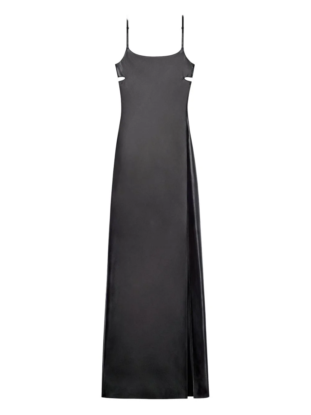 cut-out long dress Highlights - Black - Spaghetti-straps - Cut-out detail - Open-back - Side-slit Imported Composition Acetate 92%, Polyester 8% Washing instructions Read Manufacturer Guidelines