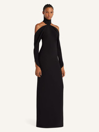 Mockneck gown with oblique sleeves. Bare back and shoulders. The model is 1.77m tall and wears a size 36. DETAILS Composition: 89% polyester, 11% polyurethane Country of Manufacture: IT SKU: 325CRO683PL01599999 Color: Black