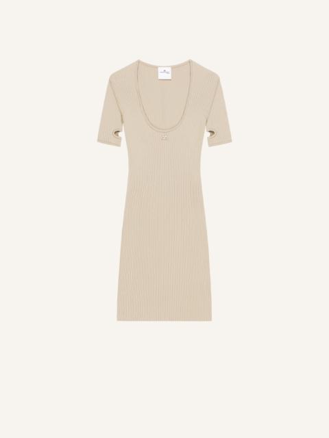 Short-sleeved rib-knit dress with openings on the inner arm and AC logo below the neckline. The model is 1.77m tall and wears a size S. DETAILS Composition: 70% viscose, 30% polyester Country of Manufacture: IT SKU: 125MRO584FI00011118 Color: Dark Sand