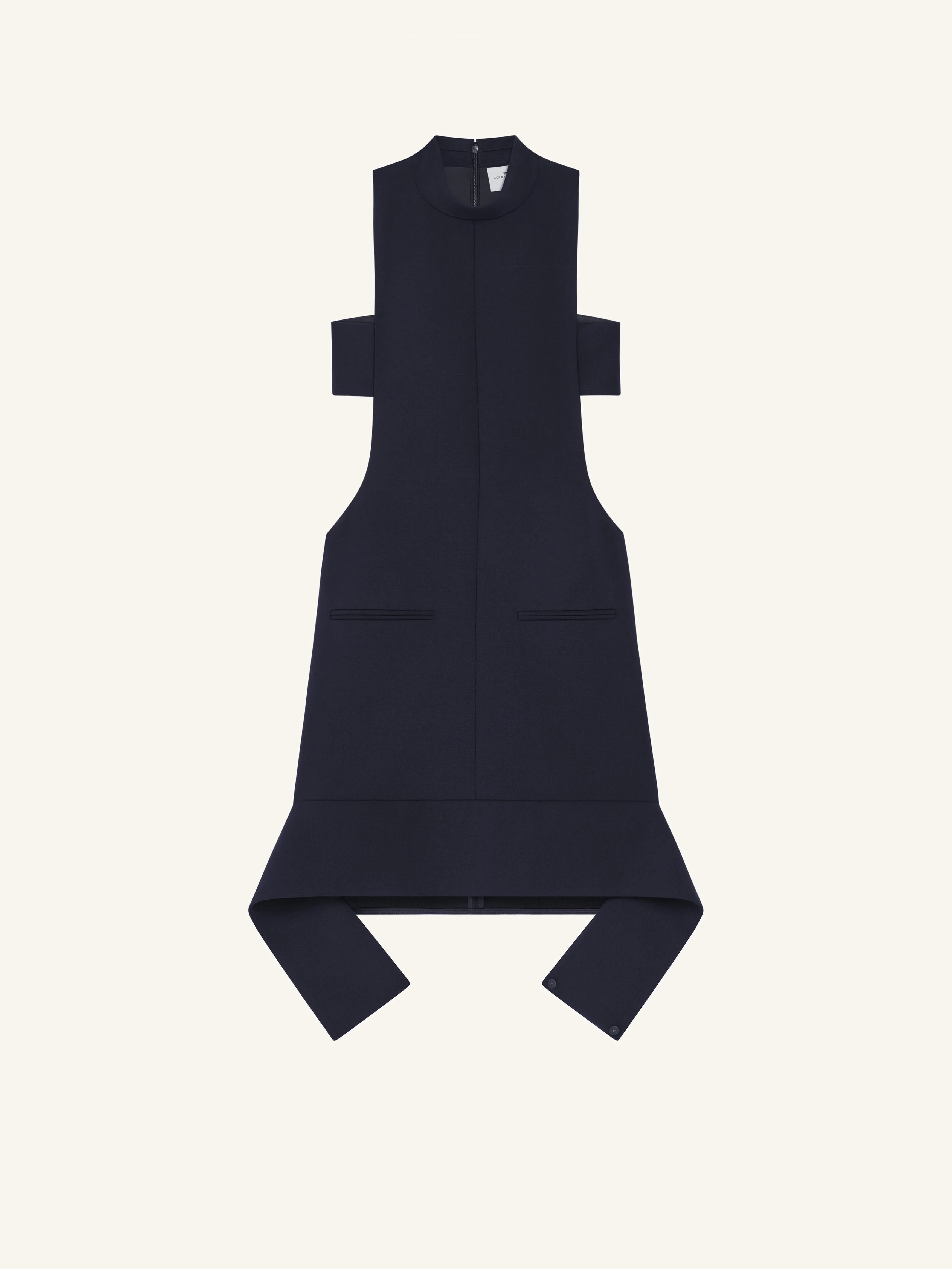 Short mockneck dress with integrated bra and attachable back band. Two front welt pockets. DETAILS Composition: 51% polyester , 41% wool , 8% other fabrics Country of Manufacture: IT SKU: 225CRO622PL01707075 Color: Navy