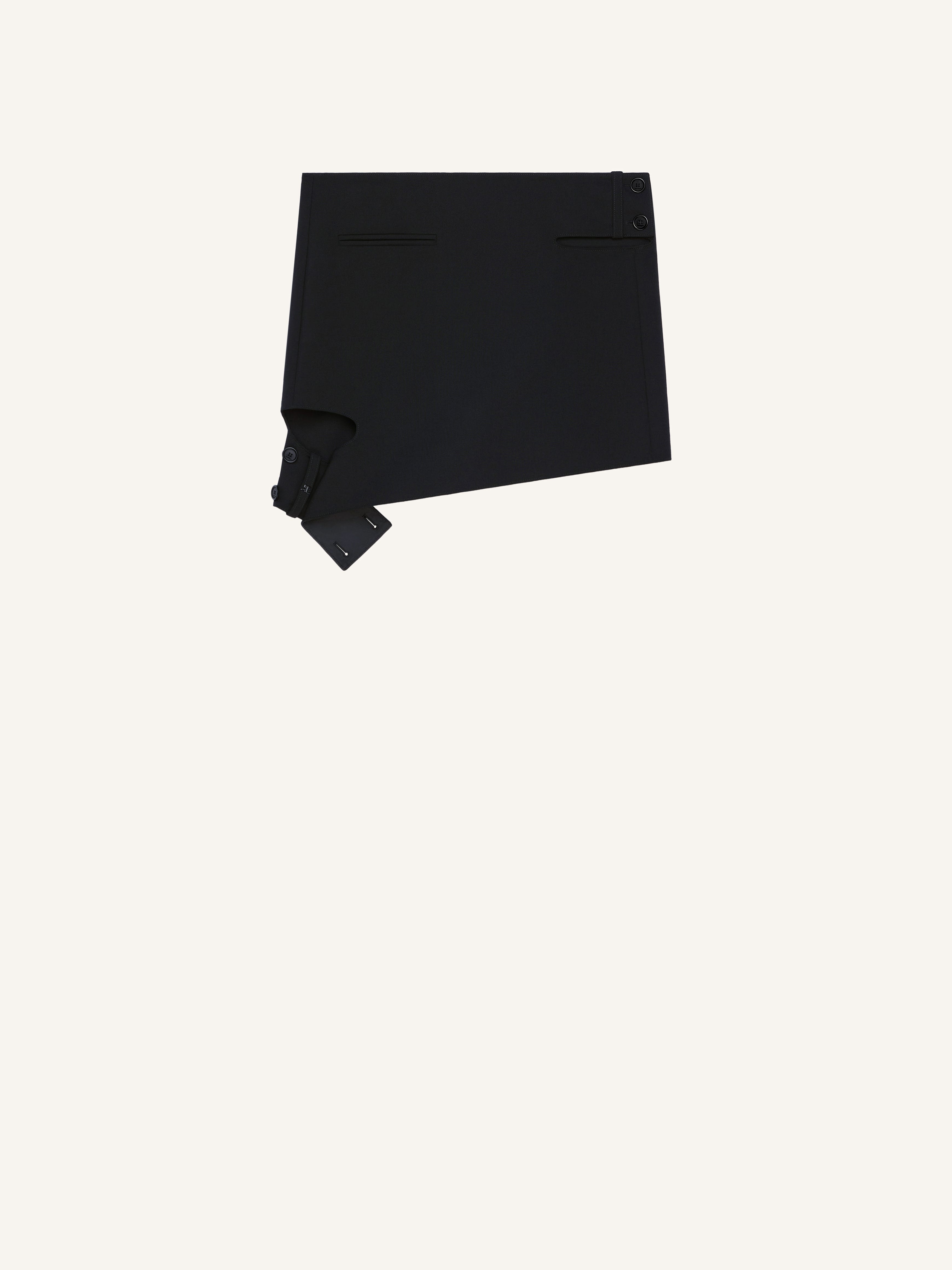 Polywool mini skirt with button placket on the hip and on the bottom. Front welt pocket. The model is 1.75m tall and wears a size 36. DETAILS Composition: 51% polyester, 41% wool, 4% elastane, 4% polyamide Country of Manufacture: IT SKU: 125CJU222PL01709999 Color: Black
