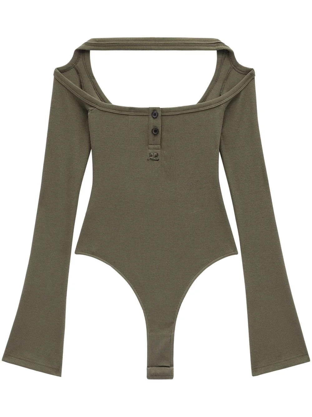 cut-out ribbed bodysuit Highlights - Olive green - Stretch-cotton - Ribbed - Off-shoulder - Cut-out detailing - Long sleeves - High cut - Press-stud fastening - Just a reminder that this piece must be tried on over your own garments. Imported Composition Cotton 97%, Elastane 3% SIZE & FIT FittingInformation Designed for a close fit throughout Made from a midweight stretch fabric, this piece offers elasticity and flexibility when worn This piece fits true to size – take your usual size Washing instructions Read Manufacturer Guidelines