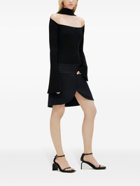 cut-out ribbed jumper Highlights - Black - Ribbed knit - Embroidered logo to the front - Cut-out detailing - Mock neck - Long sleeves - Straight hem Imported Composition Viscose 70%, Polyester 30% Washing instructions Read Manufacturer Guidelines