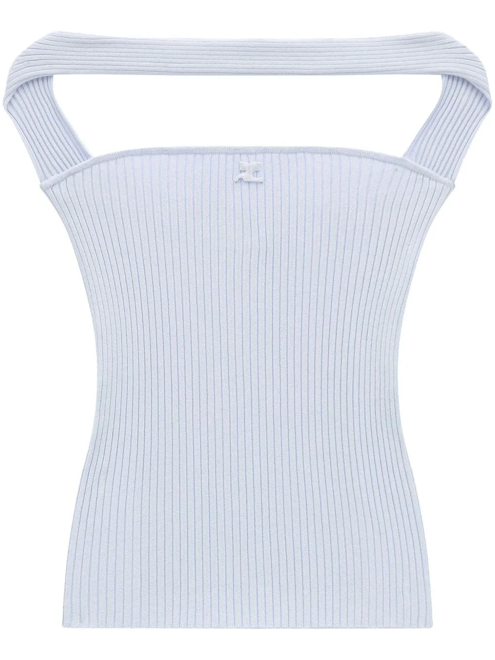cut-out ribbed knit top Highlights - Light grey - Ribbed knit - Embroidered logo to the front - Cut-out detailing - Sleeveless - Straight hem Imported Composition Viscose 70%, Polyester 30%
