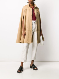 cut-out sleeve flared coat Camel brown cotton cut-out sleeve flared coat from Courreges featuring a textured style, a flared style, cut out details, a high standing collar, a mid-length and a button fastening. Imported Composition Outer: Cotton 100% Lining: Acetate 60%, Cupro 40% SIZE & FIT Model measurements Height 5 ft 11 in(1.8 m) Bust/Chest 31.49 in(80 cm) Hips 35.82 in(91 cm) Waist 24.8 in(63 cm) Washing instructions Dry Clean Only