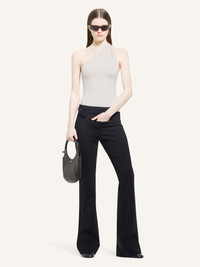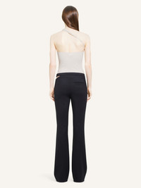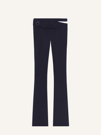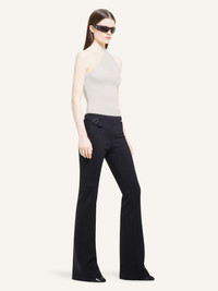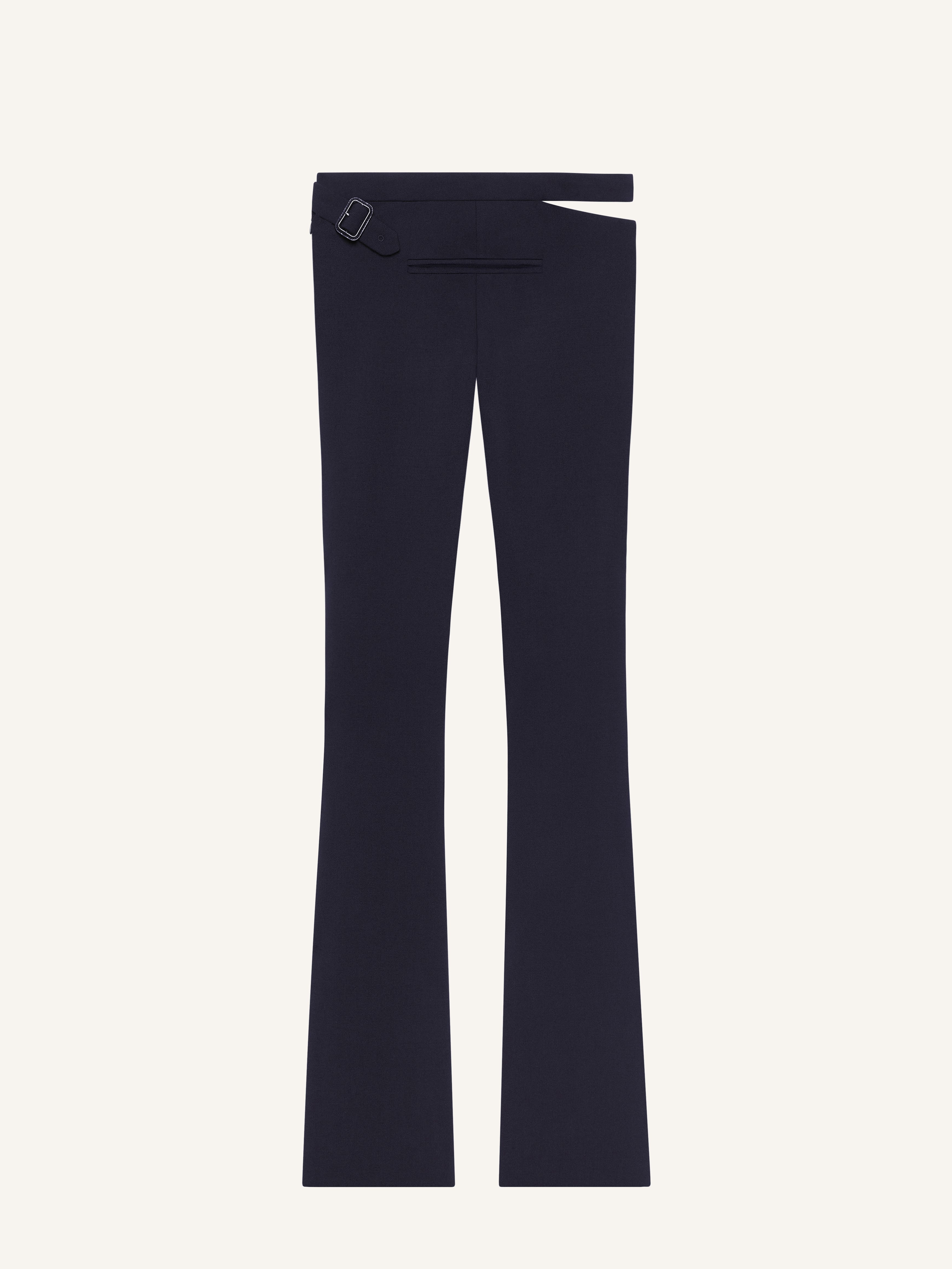 Bootcut tailored pants with a center welt pocket. asymmetrical opening at hip with buckle. The model is 1.78m tall and wears a size 36. DETAILS Composition: 93% wool, 4% elastane, 3% polyamide Country of Manufacture: IT SKU: 424CPA265WO01139999 Color: Black