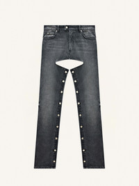 Denim chaps pants with a straight leg fit and buttonned legs. Two front welt pockets and two back pockets with embroidered AC logo. DETAILS Composition: 100% Cotton Country of manufacture: Tunisia Color: Stonewashed Grey Item code: 323DPA144DE0009