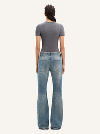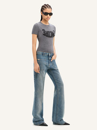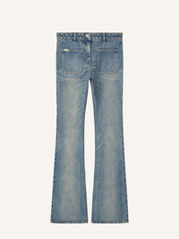 Denim bootcut pants with two patch pockets at front and back. Courreges logo on front pocket and AC logo embroidered on back pocket. The model is 1.76m tall and wears a size 26. DETAILS Composition: 100% cotton Country of Manufacture: IT SKU: 324DPA242DE00337052 Color: Vintage Medium Blue