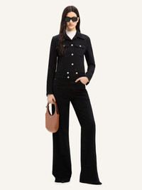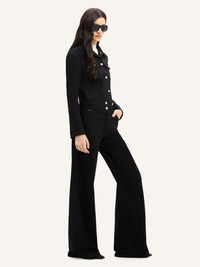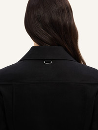 Long-sleeved signature denim Trucker jacket with button closure and AC logo at bottom. Front patch and side pockets. The model is 1.78m tall and wears a size 36. DETAILS Composition: 98% cotton, 2% elastane Country of Manufacture: IT SKU: VESDBL002DE00209999 Color: Black