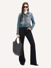 Denim signature Trucker jacket with chest patch pockets and side welt pockets. Long sleeves. Front flex button closure with AC logo at the bottom jacket. The model is 1.75m tall and wears a size 36. DETAILS Composition: 100% cotton Country of Manufacture: IT SKU: 324DBL002DE00337052 Color: Vintage Medium Blue