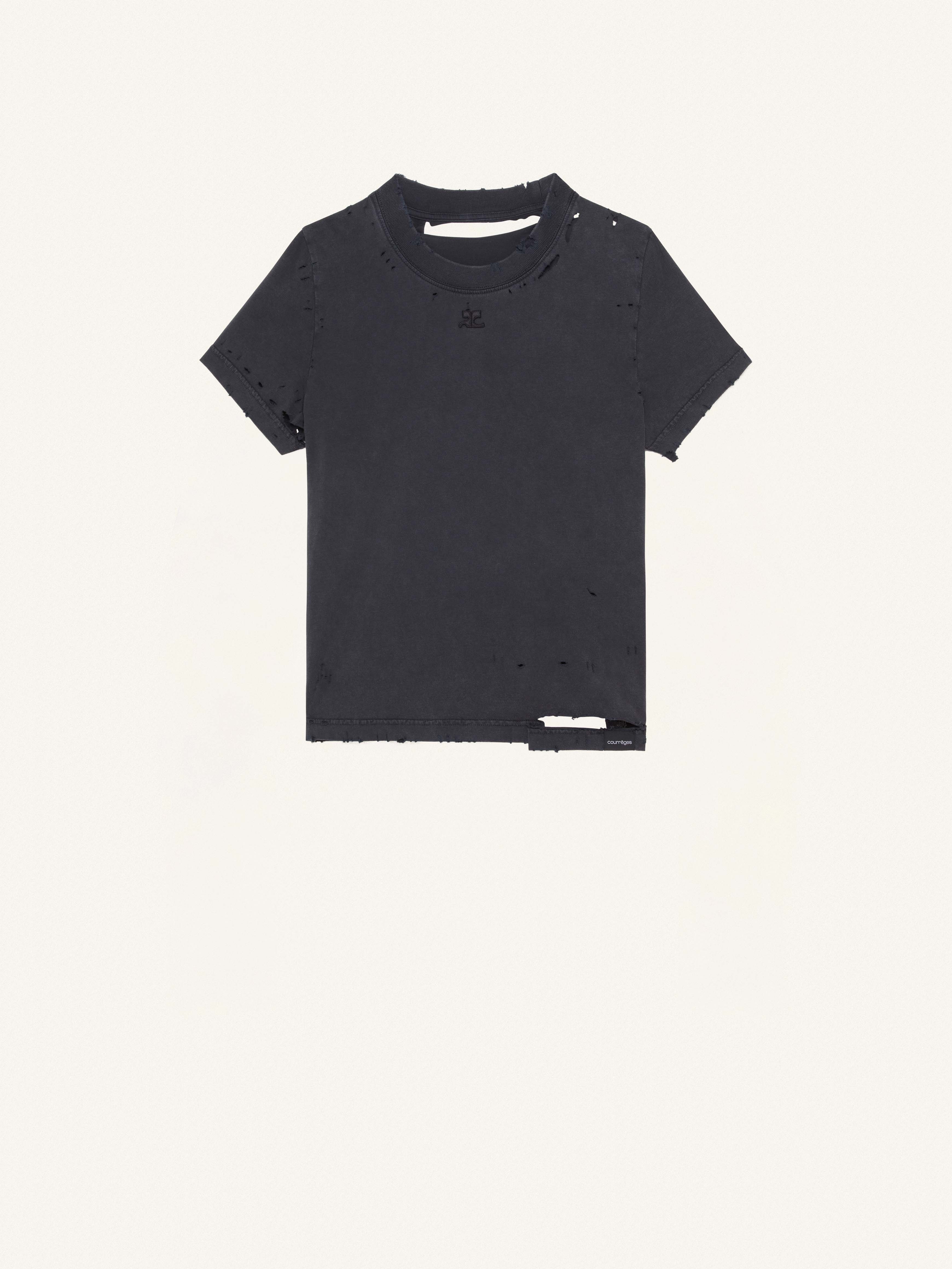Straight fit destroyed short sleeves t-shirt with AC logo. DETAILS Composition: 100% Cotton Country of manufacture: Portugal Color: Stonewashed Grey Item code: 323JTS006JS0100