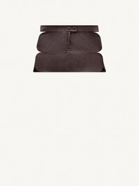 Mini vinyl skirt with diamonds cuts on the sides. "Courrèges" fly with two press studs at the waist. Rounded hems on the sides. DETAILS Composition: 88% COTON 10% POLYURETHANE 2% ELASTHANE 100% CUPRO Country of manufacture: Serbie Colour: Bordeaux Item code: 422CJU059VY00034010