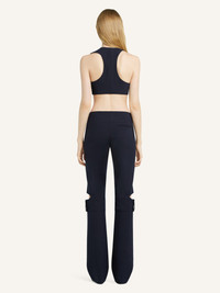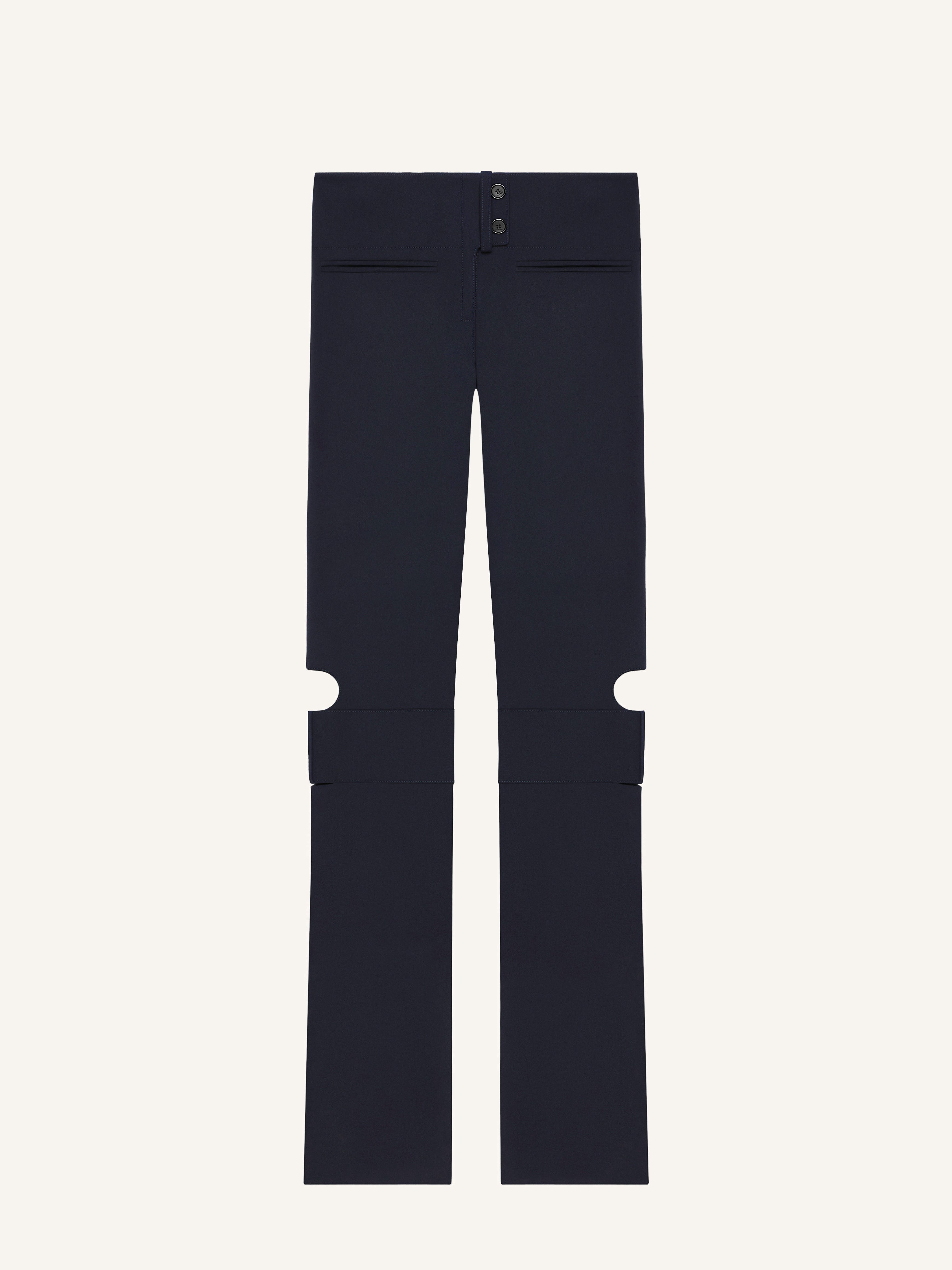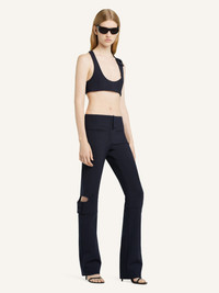 Polywool bootcut pants with openings on the exterior of the knees. Front and back welt pockets. Embroidered AC logo on back pocket. The model is 1.78m tall and wears a size 36. DETAILS Composition: 51% polyester, 41% wool, 4% elastane, 4% polyamide Country of Manufacture: IT SKU: 125CPA311PL01707075 Color: Navy