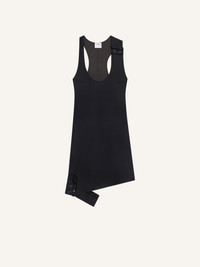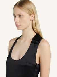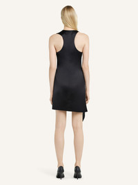 Satin short dress with button placket on the shoulder and on the side. The model is 1.77m tall and wears a size 36. DETAILS Composition: 100% viscose Country of Manufacture: IT SKU: 125CRO575VI00549999 Color: Black