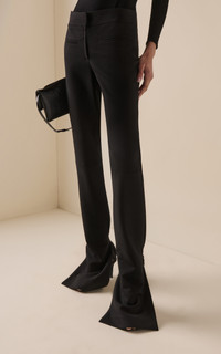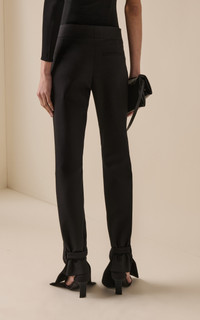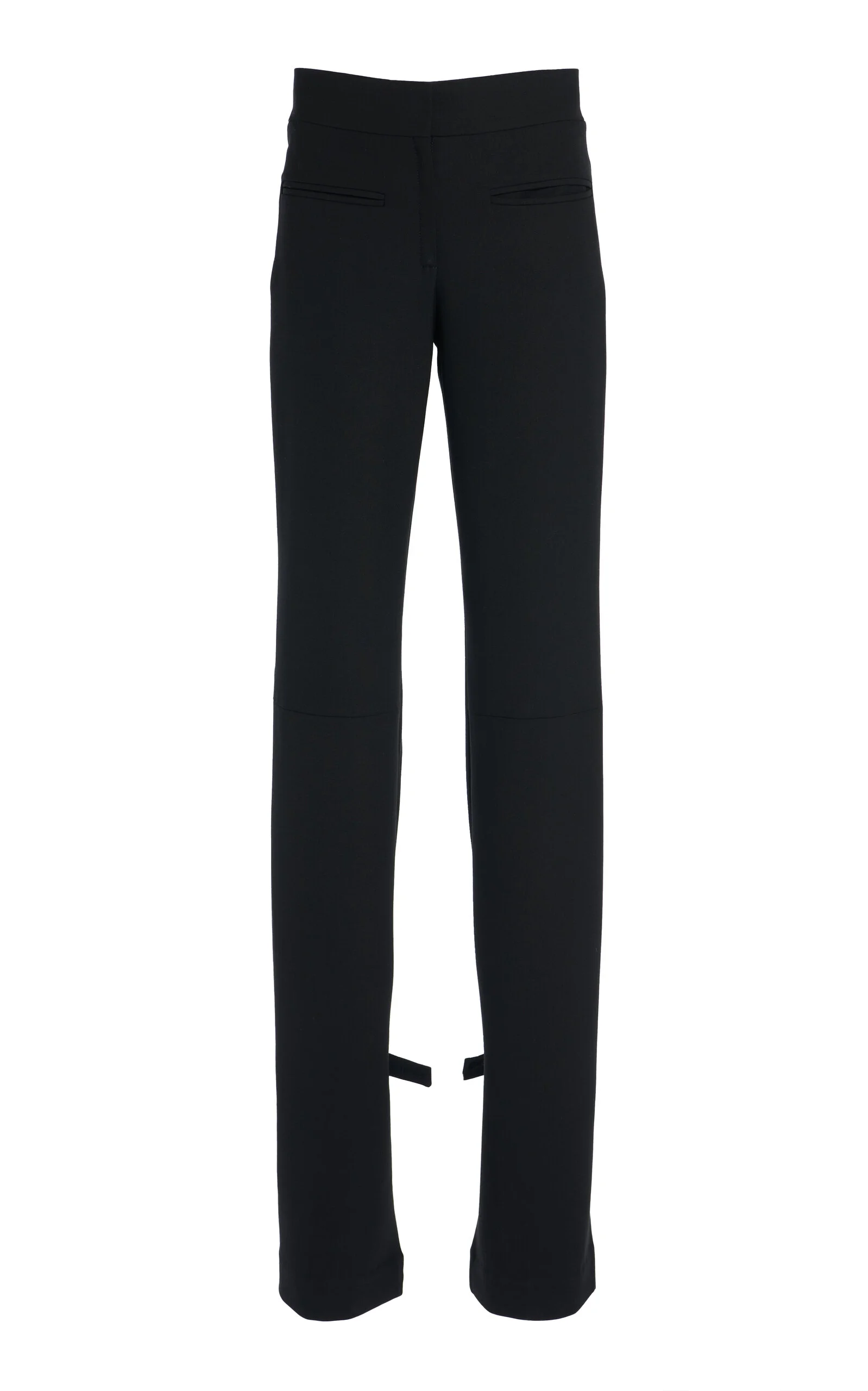 After 12 years alongside Nicolas Ghesquiere and a brief stint at Dior with Raf Simons, Courreges artistic director Nicolas Di Felice has brought the renowned French fashion house back to life. The tailored trousers are cut to a slim, straight-leg silhouette with a high-rise waist. Crafted from a polywool blend, they feature an extended split cuff detailed with adjustable straps at the hem. Style with heels to highlight the flared finish. PRODUCT DETAILS - Fall-Winter '25 - Hook and Zip Closure - Composition: 51% Polyester 41% Wool 4% Elastane 4% Polyamide/Nylon 100% Viscose - Dry Clean Only - Color: black - Made in France