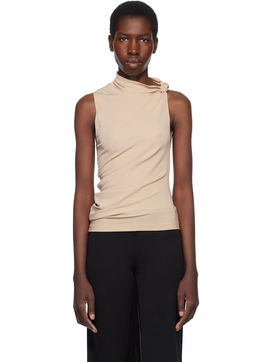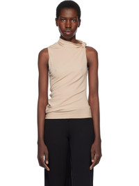 Stretch viscose jersey tank top. Draping throughout. · Modified mock neck · Asymmetric hem · Silver-tone logo hardware at twisted shoulder Supplier color: Sand 95% viscose, 5% elastane. Made in Italy 251783F111017