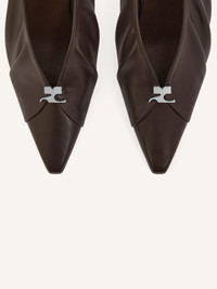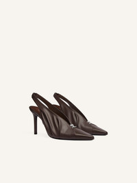 Draped slingbacks in Nappa leather-look synthetic material. Silver AC logo on front. Heel: 9 cm DETAILS Composition: 50% polyester, 50% polyurethane Country of Manufacture: IT SKU: 324SPP017PU00461146 Color: Bark