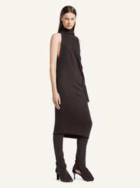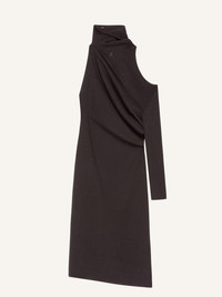 Asymmetrical mockneck wool dress with bare shoulder and AC logo on front. The model is 1.79m tall and wears a size S. DETAILS Composition: 100% merino wool Country of Manufacture: IT SKU: 425MRO723FI00361152 Color: Tapioca