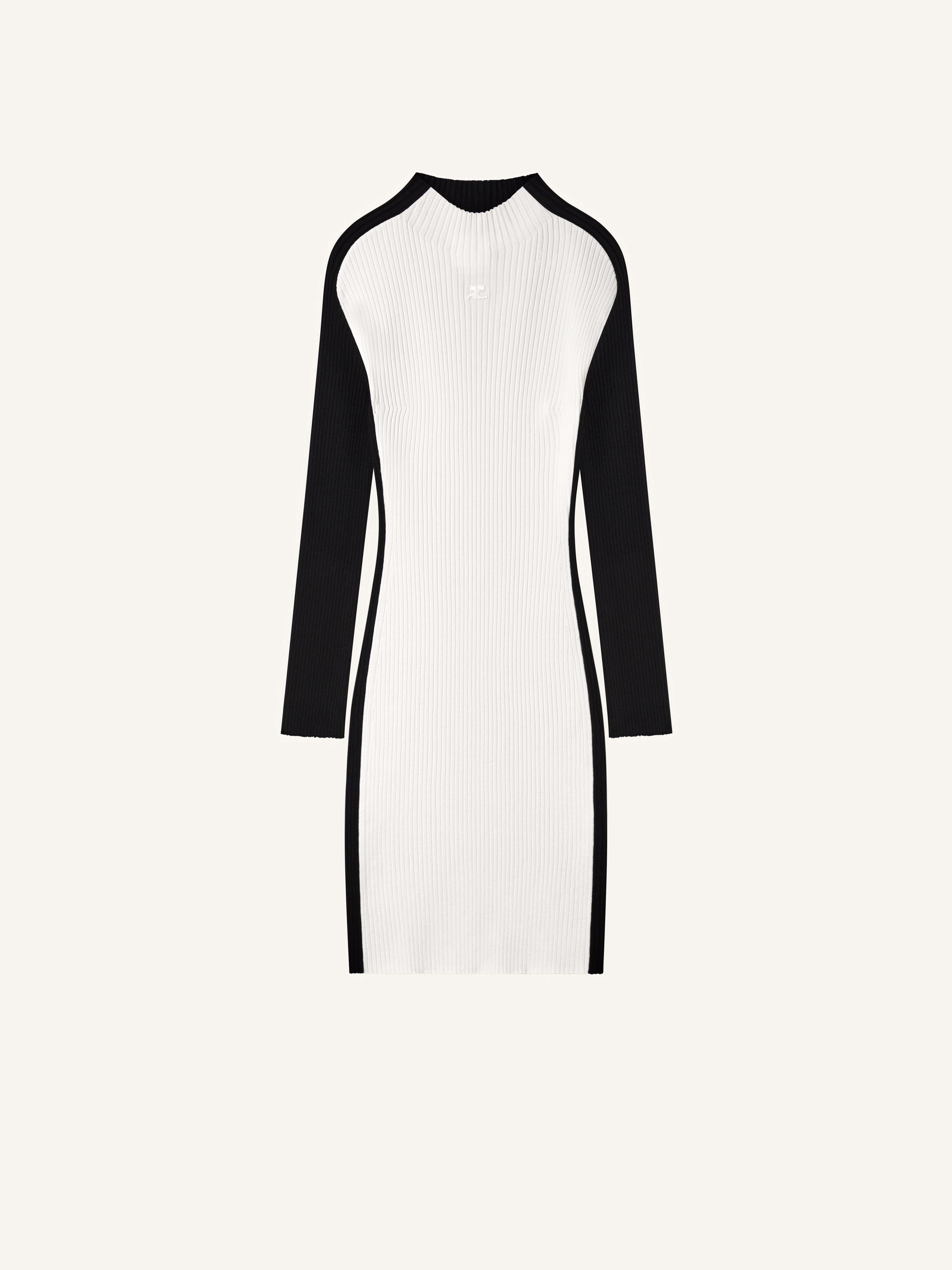 Contrast frame rib-knit mini dress with raised collar and long sleeves. AC logo centered on the chest. The model is 1.76m tall and wears a size S. DETAILS Composition: 70% viscose, 30% polyester Country of Manufacture: BG SKU: 324MRO462FI00010999 Color: Blanc / Noir