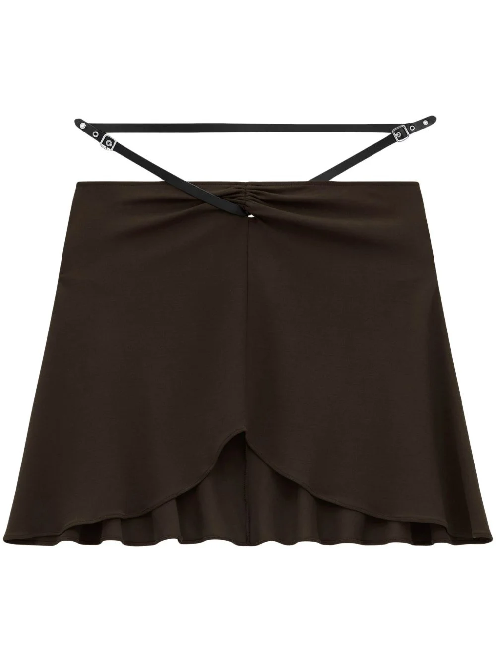 Ellipse mini skirt Highlights - Chocolate brown - Crepe texture - Thin straps - Decorative buckle detailing - Twist detailing - Curved hem - Thigh-length Made in France Composition Viscose 95%, Elastane 5%
