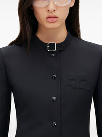 Ellipse single-breast coat Highlights - Black - Buckle neck, waist, and cuffs - Officer collar and ac logo on the chest - Slightly zipped flared sleeves - Mid-length - Side split pockets - Center-back vented hem Imported Composition Polyester 100% Washing instructions Read Manufacturer Guidelines