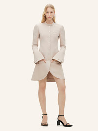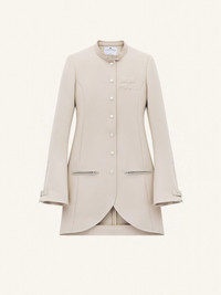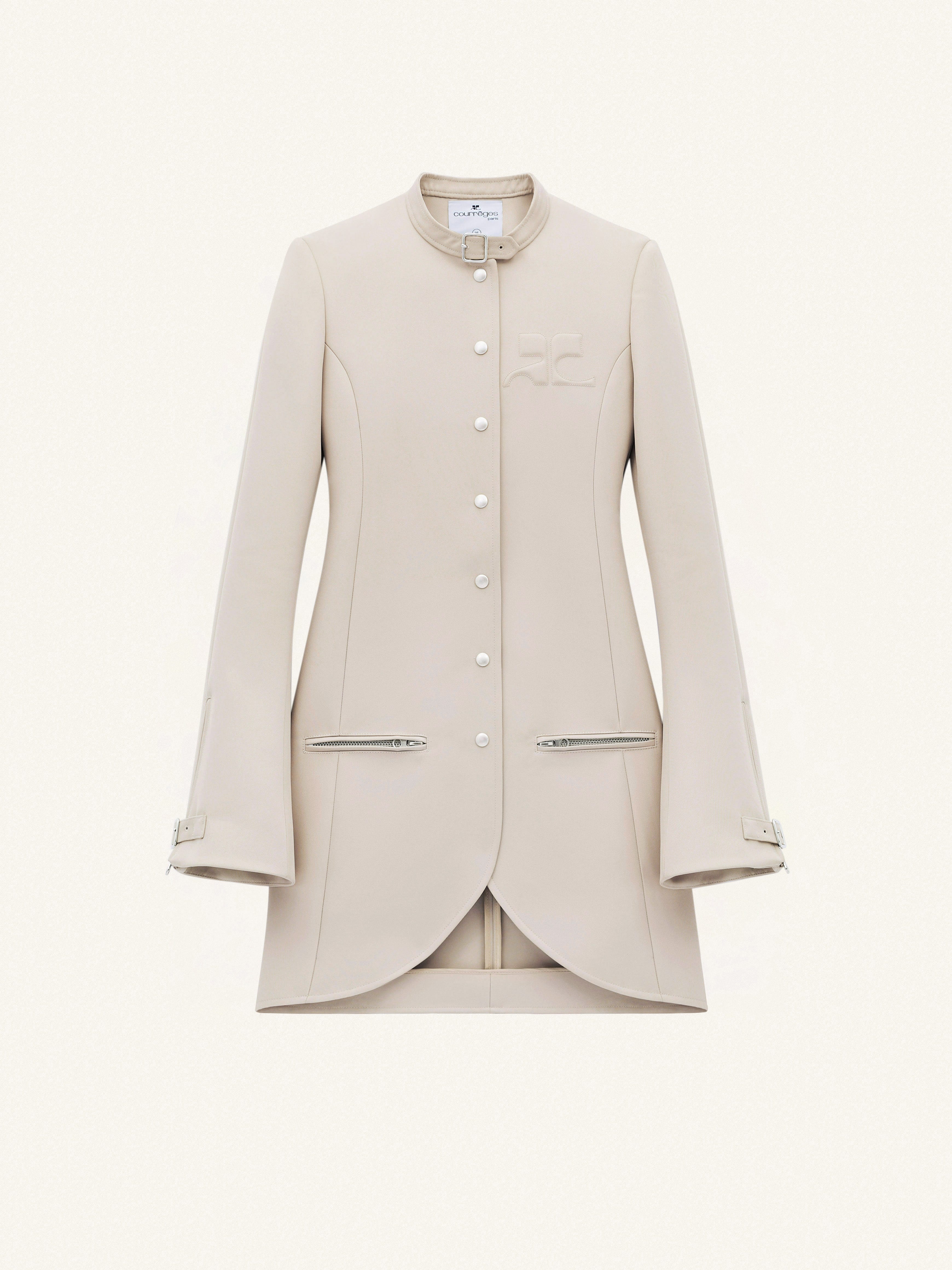 Twill ellipse coat, fitted at the waist with an officer collar and AC logo on the chest. Slightly zipped flared sleeves with tab at wrists. The model is 1m75 tall and wears a size 36. DETAILS Composition: 100% polyester Country of Manufacture: SK SKU: 224CMA145PL00771007 Color: Sand