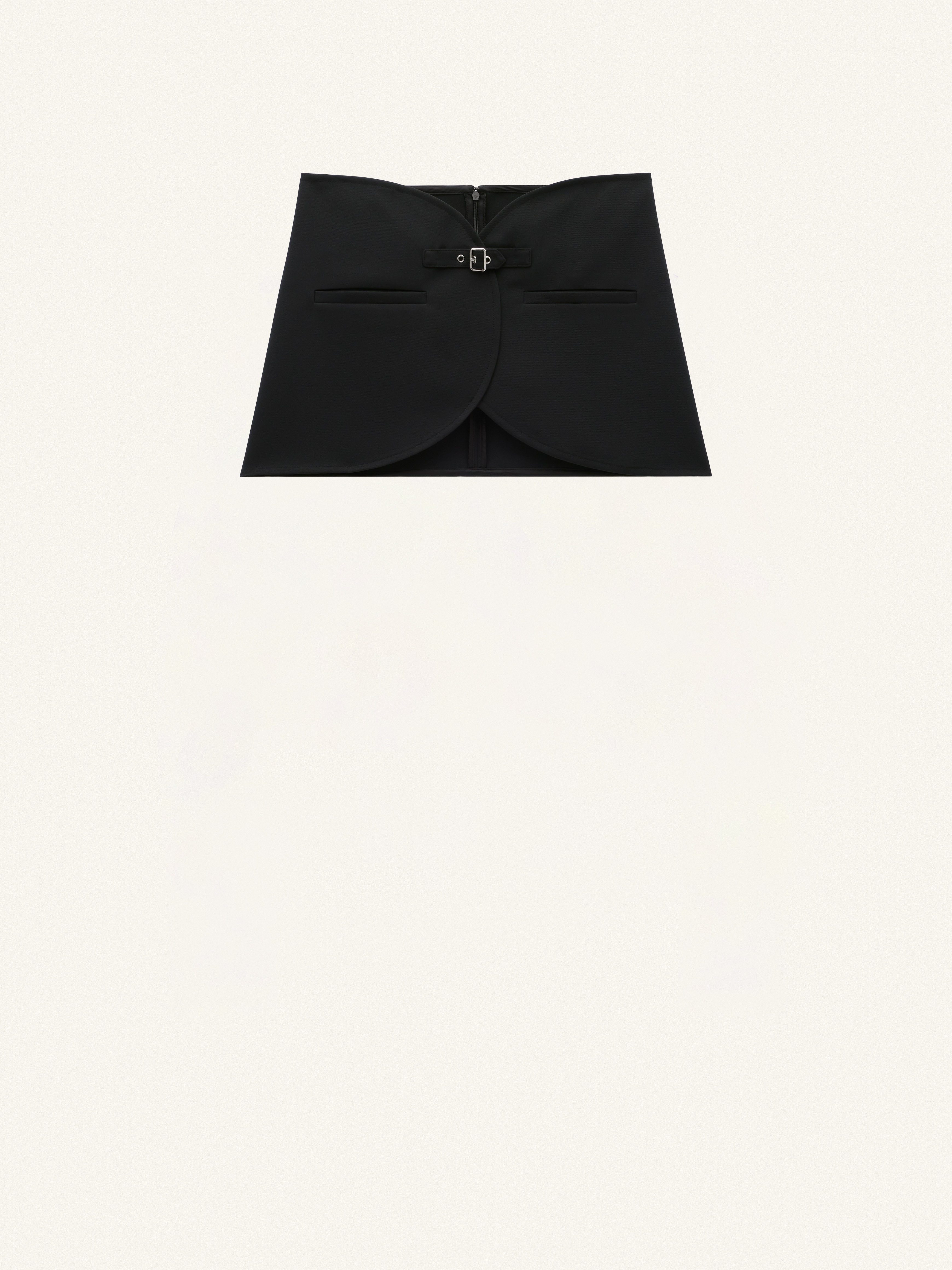 This ellipse twill mini skirt has a buckle and welt pockets. DETAILS Composition : 83% Polyester, 17% Acetate Pays de fabrication : Serbie Couleur : Noir Code Article : 124CJU143PL0007