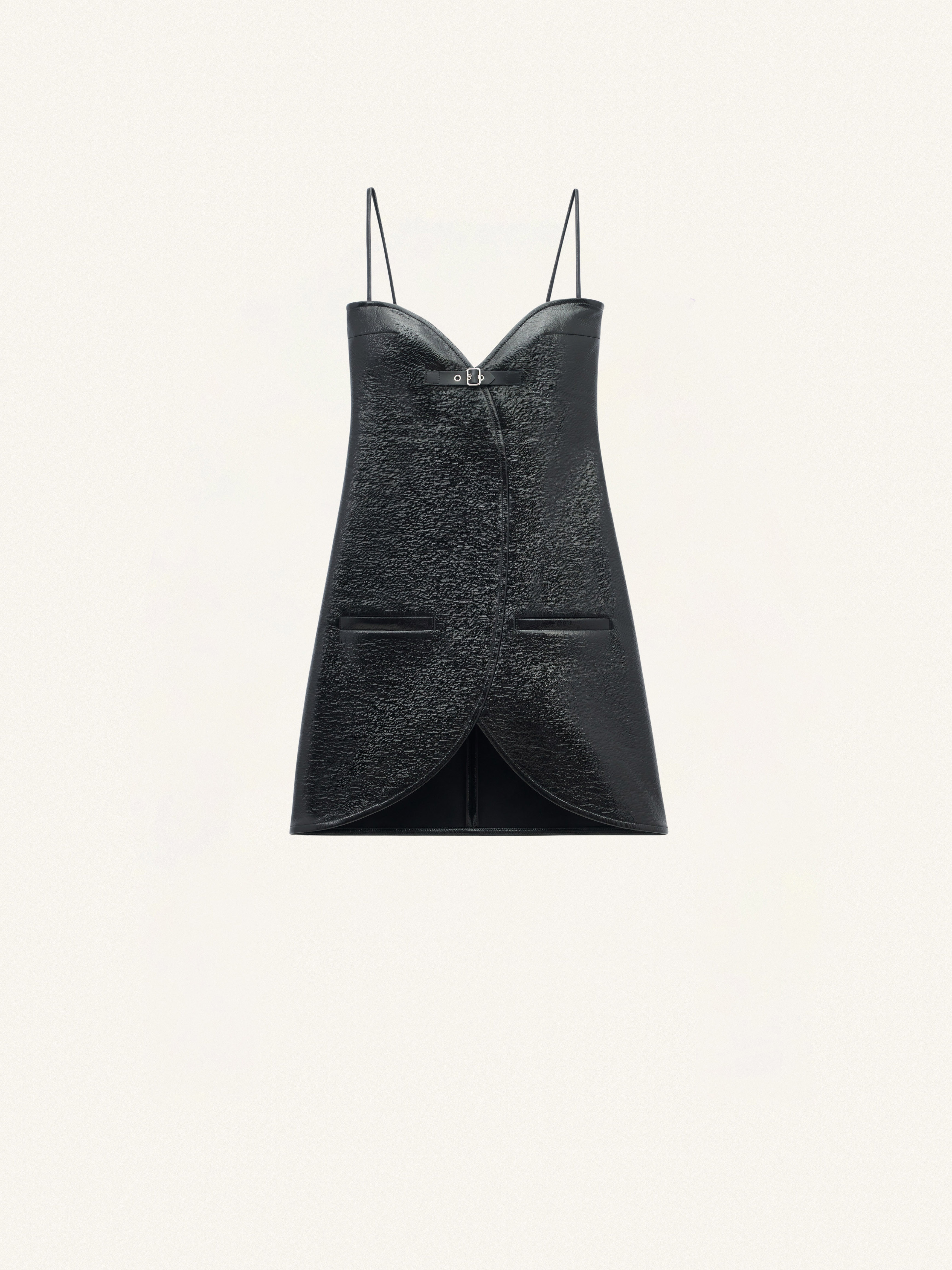 This mini ellipse vinyl dress offers a trapeze shape. It has a buckle and two welt pockets. DETAILS Composition : 88% Coton, 10% Polyuréthane, 2% Elasthanne Pays de fabrication : Serbie Couleur : Noir Code Article : 124CRO334VY0014