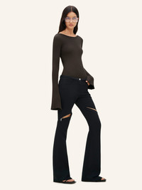 Twill bootcut pants, with thigh zips and two front pockets. The model is 1m75 tall and wears a size 36. DETAILS Composition: 83% polyester, 17% acetate Country of Manufacture: IT SKU: 224CPA231PL00079999 Color: Black
