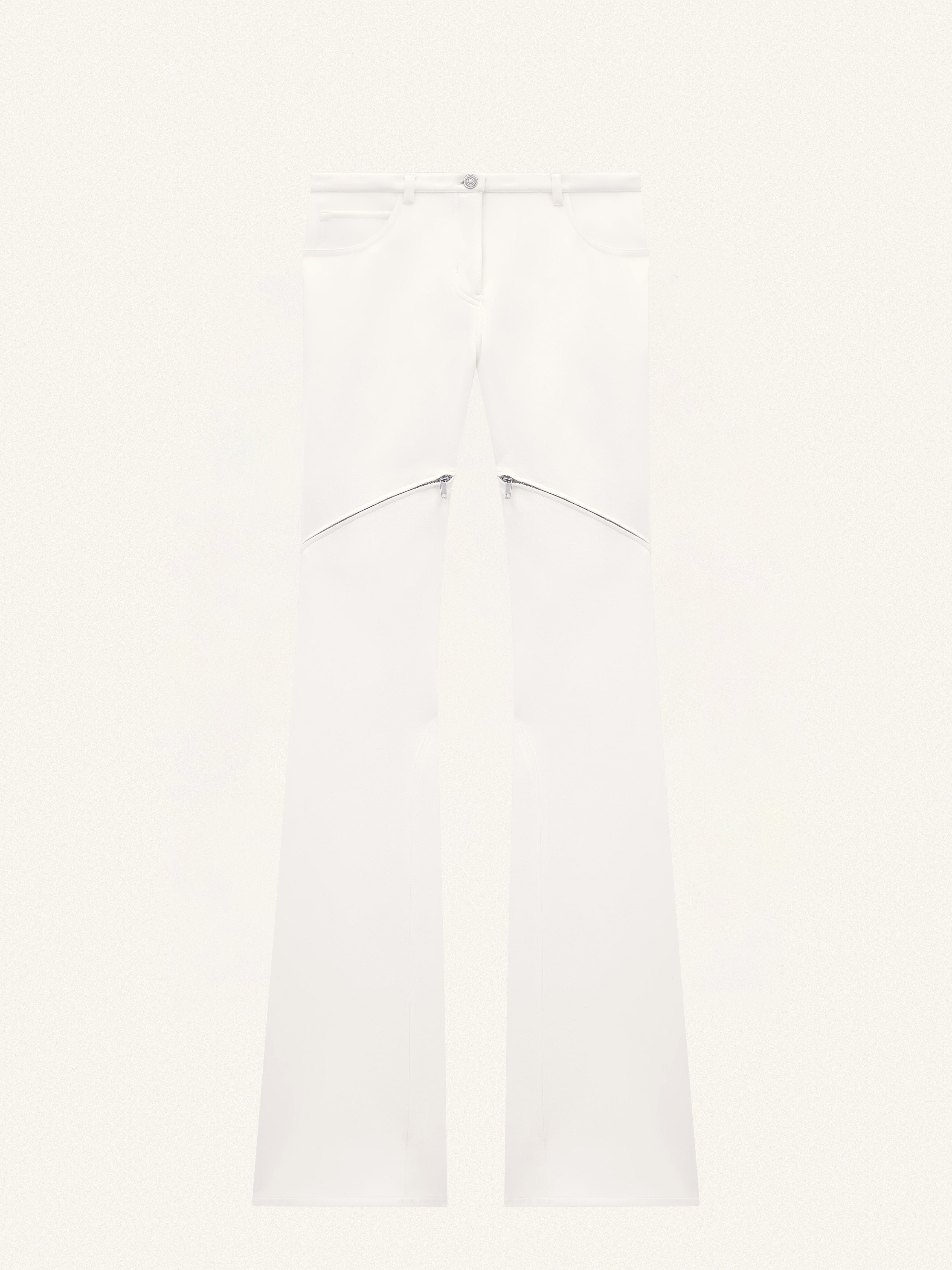 Twill bootcut pants, with thigh zips and two front pockets. The model is 1m75 tall and wears a size 36. DETAILS Composition: 83% polyester, 17% acetate Country of Manufacture: IT SKU: 224CPA231PL00070030 Color: Ecru