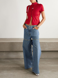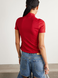 Courreges T-shirt has a cool, sporty feel thanks to its zip-up front. Cut from smooth jersey for a slim fit, it's detailed with a mock neckline and an embroidered logo at the chest. Size & Fit - Fits true to size, take your normal size - Designed for a slim fit - Cropped length - Mid-weight, stretchy fabric - Model is 177cm/ 5'10" and is wearing a size XSmall Model measurements: - Bust: 85cm/ 33.5" - Waist: 65cm/ 25.5" - Hip: 91cm/ 36" Details & Care - Red jersey - Two-way zip fastening - 100% polyester - Machine wash