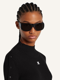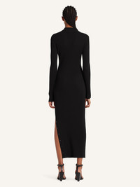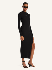 Knit mockneck long dress with slit and side buttoned sleeve. Embroidered AC logo below neckline. The model is 1.77m tall and wears a size S. DETAILS Composition: 70% viscose, 30% polyester Country of Manufacture: BG SKU: 325MRO692FI00019999 Color: Black