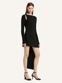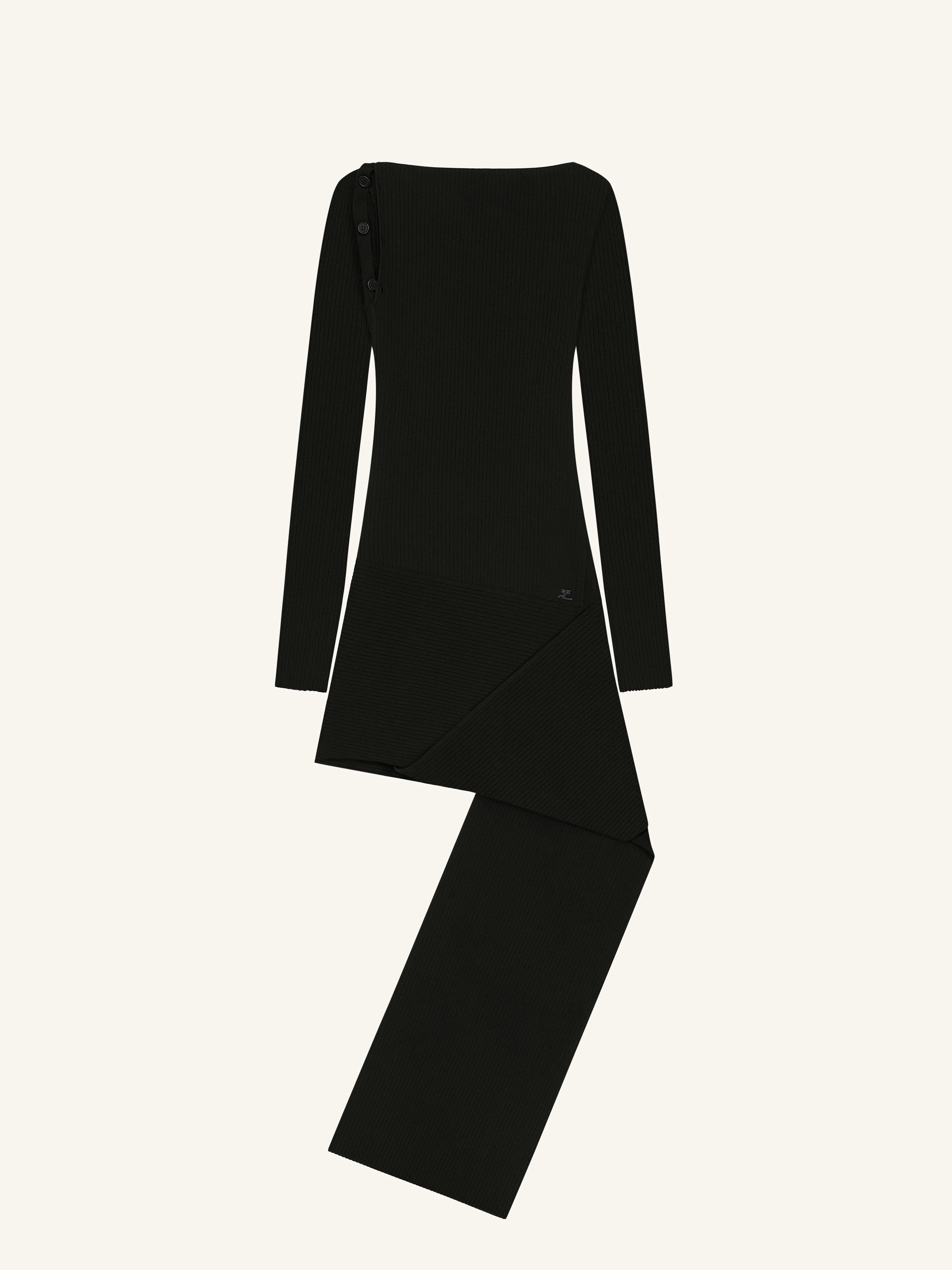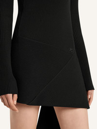 Long sleeved short rib-knit dress with buttoned shoulder cut-out. Asymmetrical side panel and AC logo on side. The model is 1.79m tall and wears a size S. DETAILS Composition: 70% viscose, 30% polyester Country of Manufacture: BG SKU: 425MRO746FI00019999 Color: Black