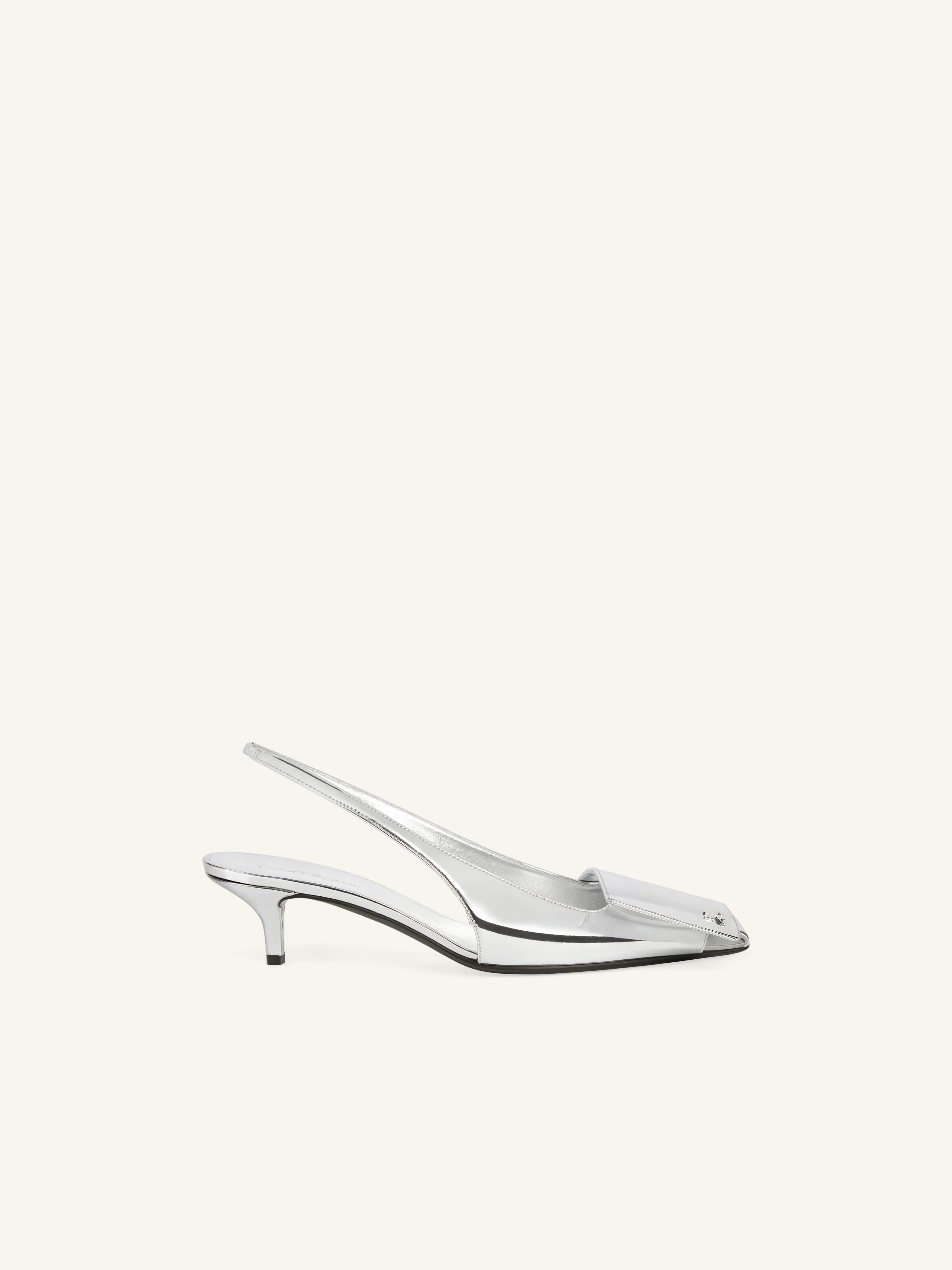 Mirror effect heeled Fold slingbacks. Non-adjustable flap detail at the front with metallic AC logo. Heel height : 45 mm DETAILS Composition: 40% polyester , 38% polyurethane , 22% others Country of Manufacture: IT SKU: 126SPP052PU00609002 Color: Mirror