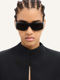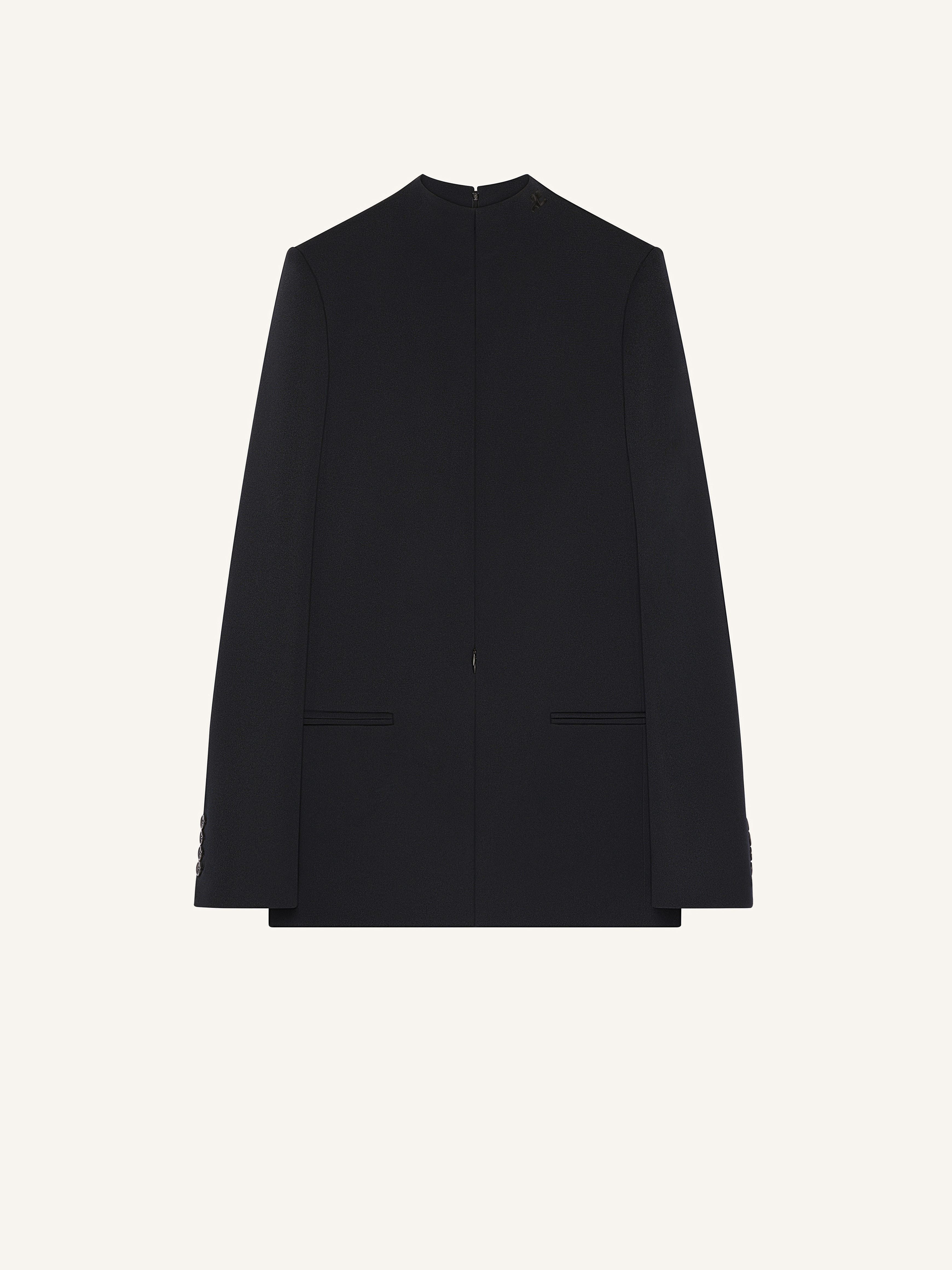 Mini dress with long, slightly flared sleeves and buttons. High collar with AC logo. Zipped openings along the bust and at the hips. The model is 1.76m tall and wears a size 36. DETAILS Composition: 83% polyester, 17% acetate Country of Manufacture: SK SKU: 324CRO482PL00079999 Color: Black