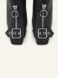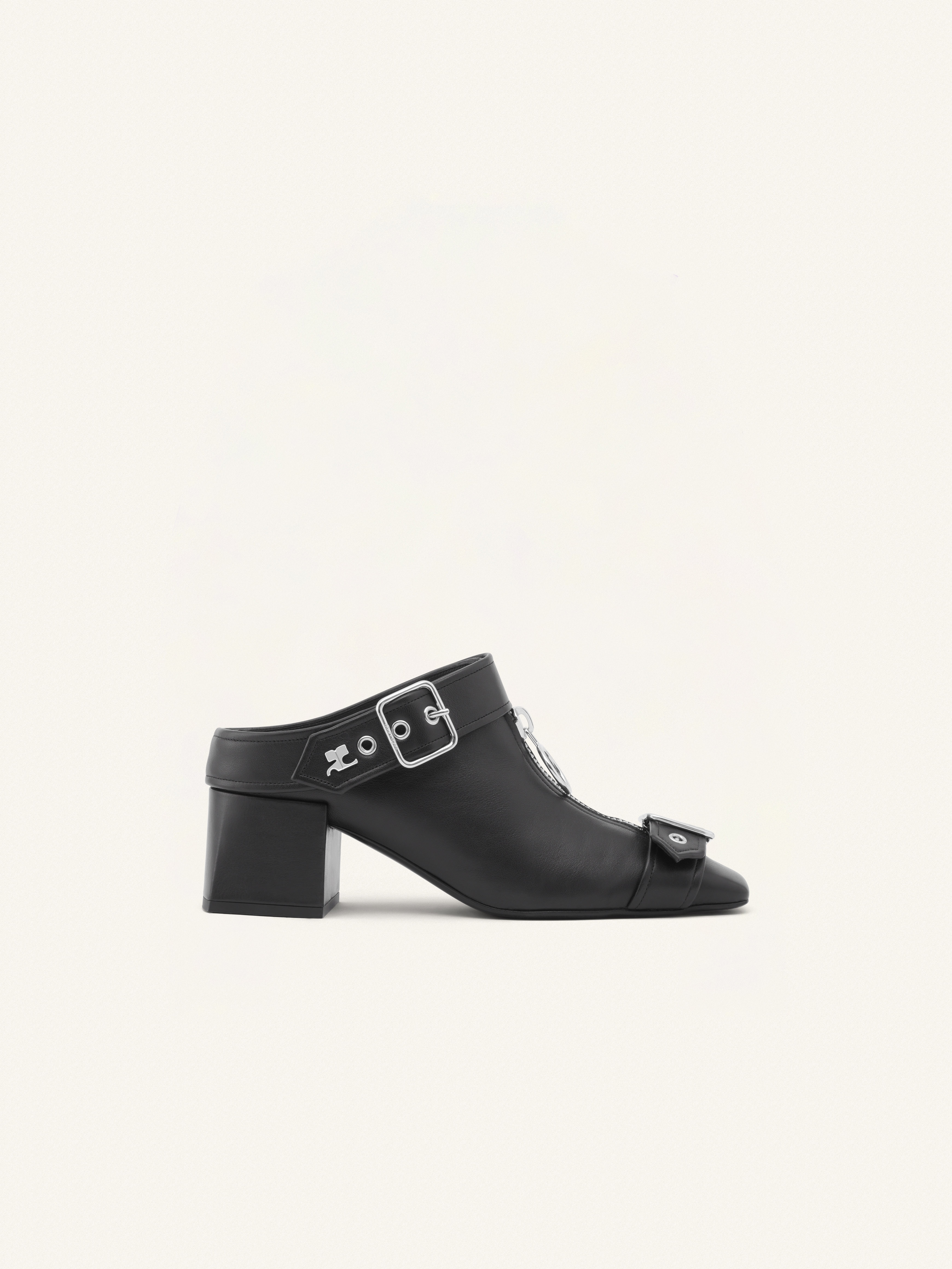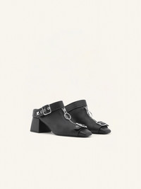 Gogo mules in leather with square toe, metal zipped with round puller and buckle details. Heel: 5.5cm DETAILS Composition : 100% Cuir Pays de fabrication : Italie Couleur : Noir Code Article : 124SCS096CV0027