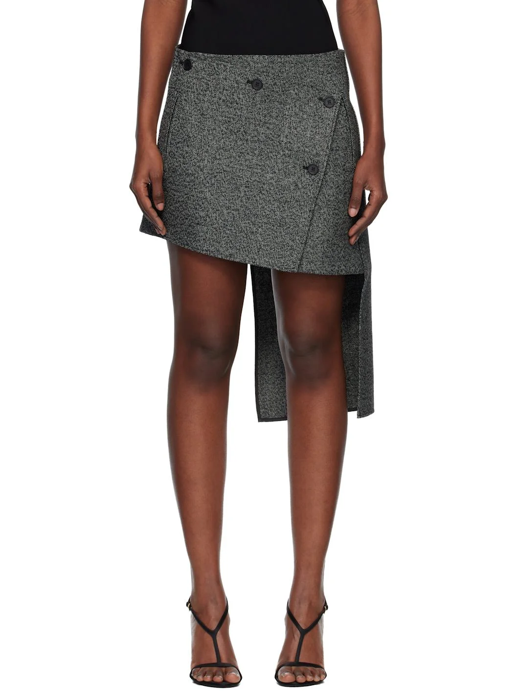 Plain-woven wool miniskirt. · Asymmetrical wrap construction · Button closure at front · Two-pocket styling · Button tab at back · Extended panel at back · Full satin lining · Logo-engraved hardware Supplier color: Black/Heritage white Body: 100% wool. Lining: 100% cupro. Made in Romania 252783F090011