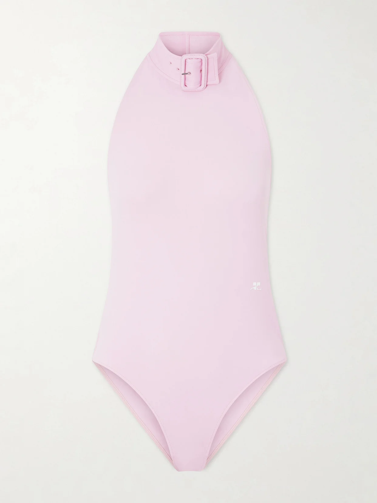 Designed with attention to detail, Courreges' bodysuit has an unexpected buckled raised mockneck. Made from stretch-jersey, it has a contouring fit in a pretty pink shade that'll add a pop of color to jeans or skirts.